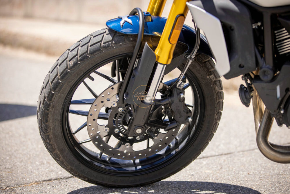 前刹车配备320mm单盘,是700CL-X的一大槽点,虽然采用西互四活塞辐射式刹车卡钳,标配德国大陆双通道ABS,但是很多车友对此并不买账。