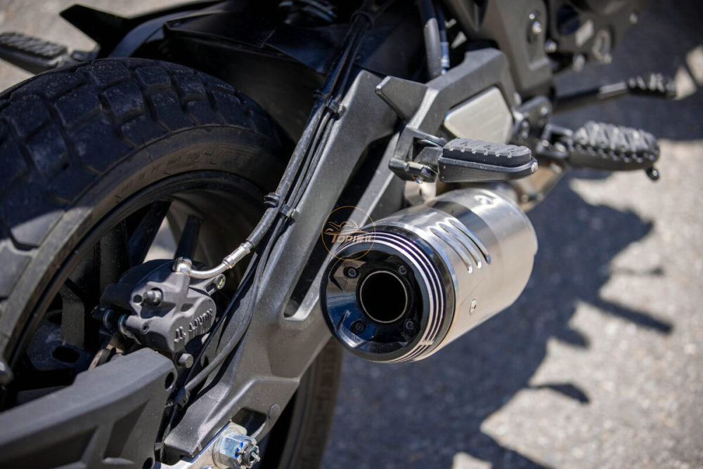 粗壮的铝合金后摇臂,在视觉效果上起到很大作用,同时也体现出大排的既视感,在氛围的营造上设计师下了不少功夫。