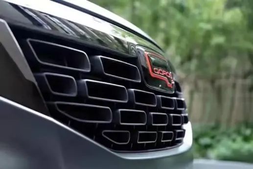 两侧的光源全部都是LED的,并且大灯开眼角做得也非常漂亮,在眼角的部位,使用了黄色点阵式光源布置。日间行车灯上下共有两条,进气中网用观致特有的扁口长方形设计,比较与众不同。