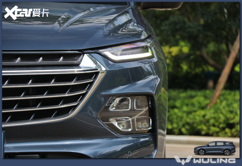 分体式大灯上部为“鹰眼”状日间行车灯,下部为四透镜矩阵式大灯,照明效果不错,还很有气势!