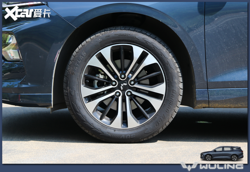 五菱凯捷全系均采用尺寸为225/55 R18的轮胎,我们拿到的车型选用ATLAS轮胎(属玲珑旗下品牌),偏舒适和静音取向。轮圈具有很高接受度,双五辐造型让车轮看起来兼具力量感和运动感。