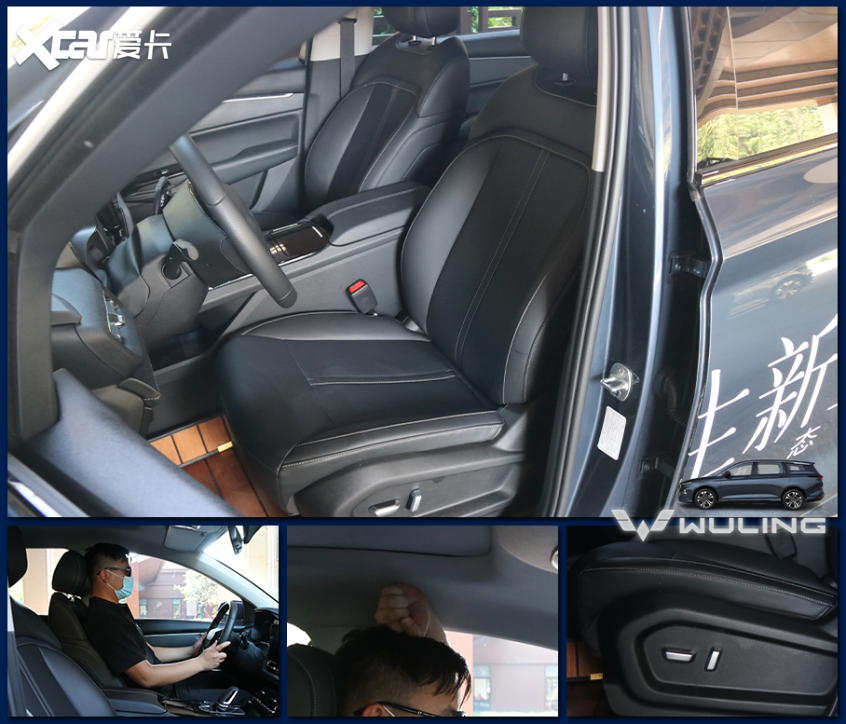 凯捷的主驾位座椅支持电动调节,包括前后、高低(2向)、靠背角度调节,副驾位为手动调节,仅支持座椅前后和靠背角度调节。体验者身高175厘米,调整到合适坐姿后,头部有大于一拳的空间(体验者坐姿较高)。