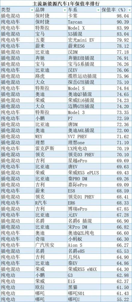说实话,保时捷这个并不以新能源车见长的品牌居然夺得了新能源车一年保值率冠军,非常出乎意料。