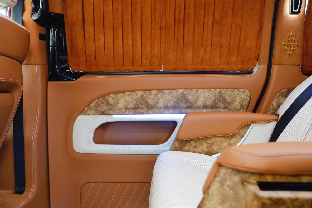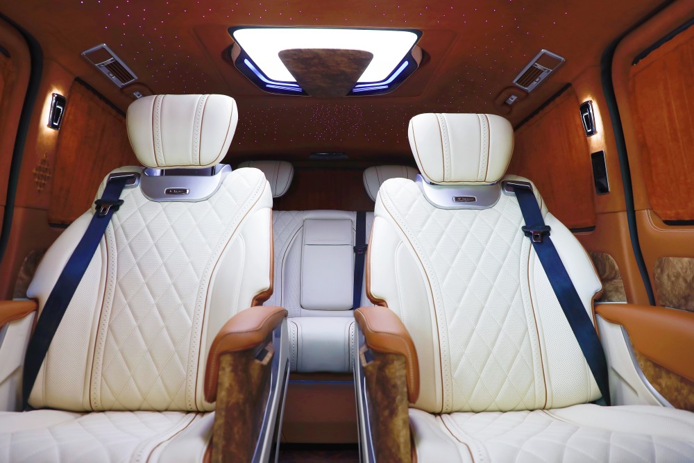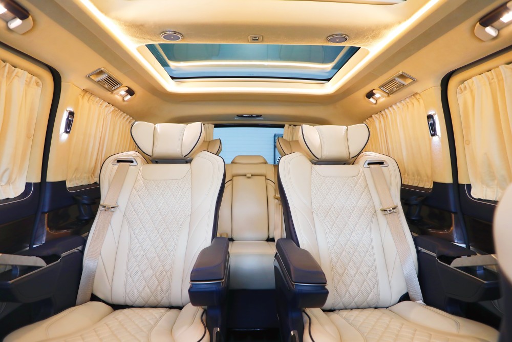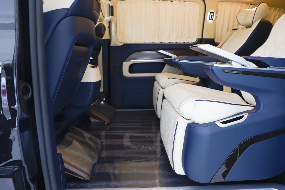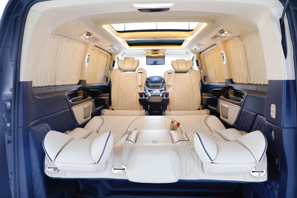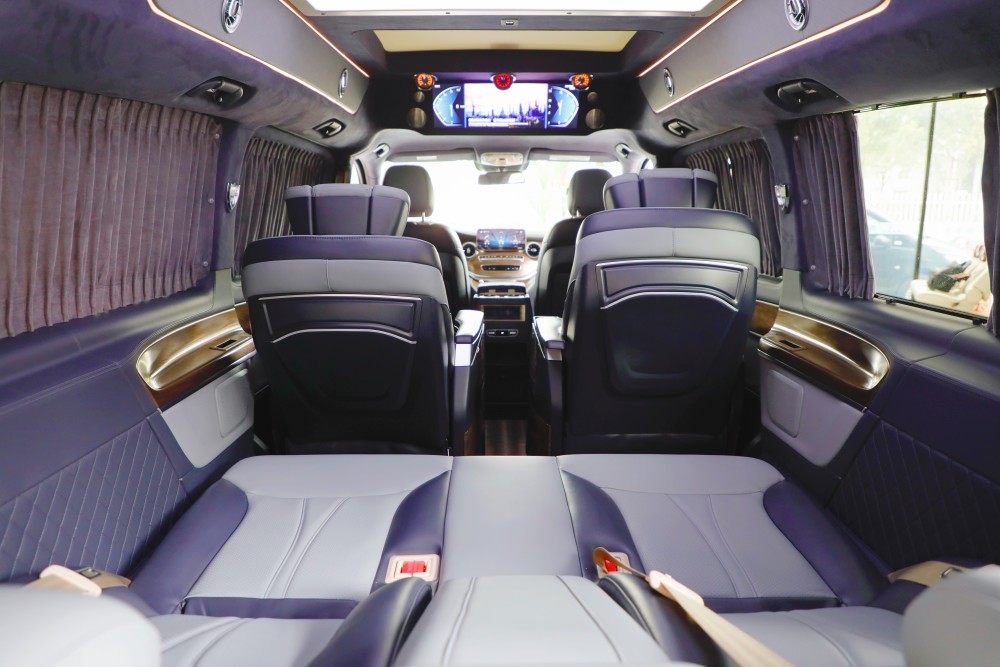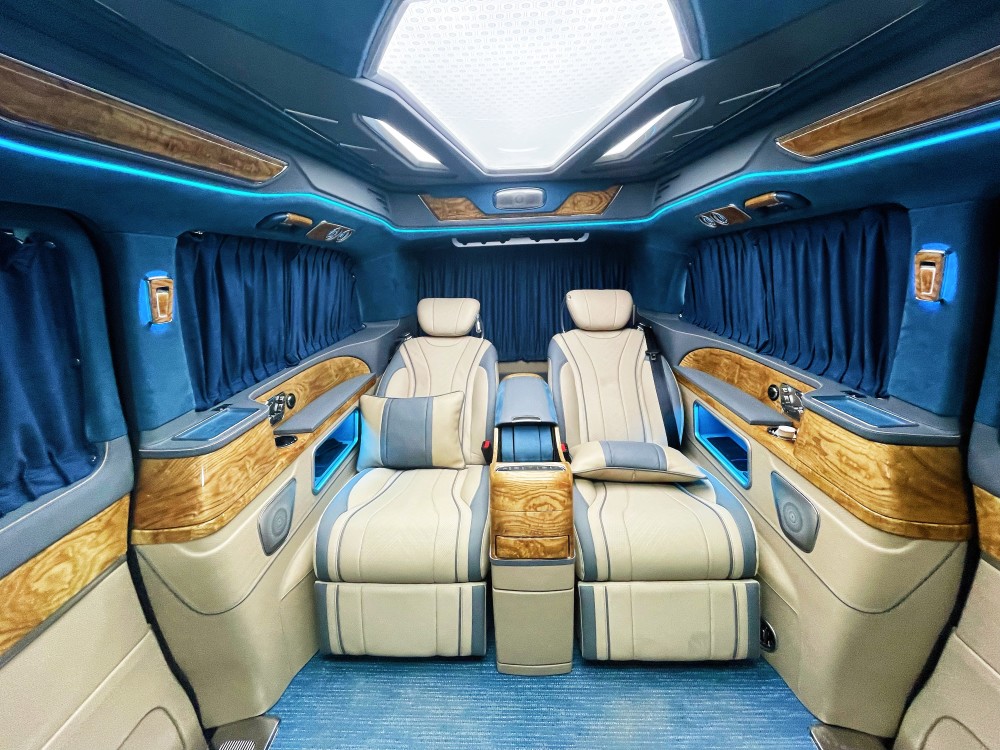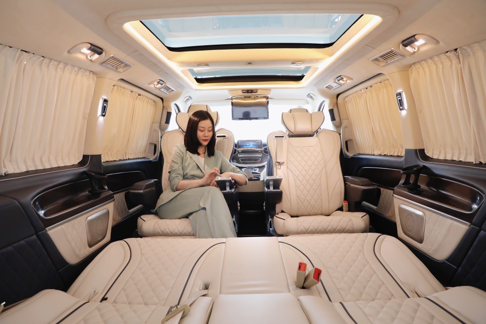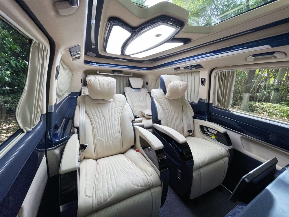 我们接着来看第二款,奔驰V级的平顶版头等舱,基于5.14米的标轴定制,如果平时喜欢自驾的大佬们,觉得5.4米车太长,停车不方便,操控又不灵活,标轴版绝对可以优先考虑。