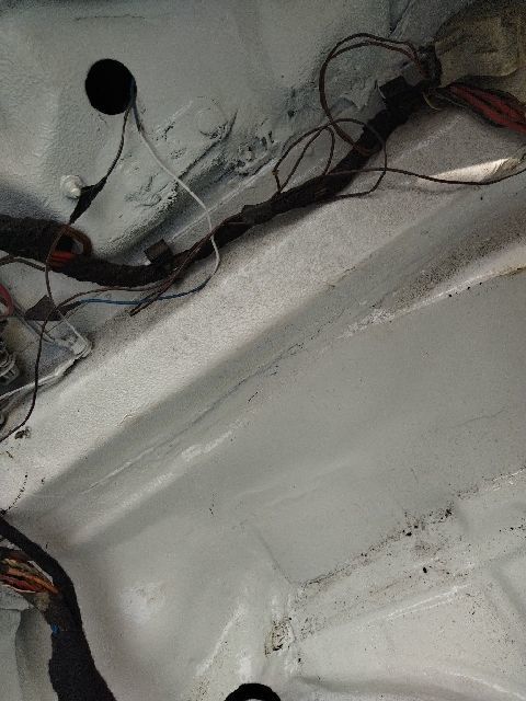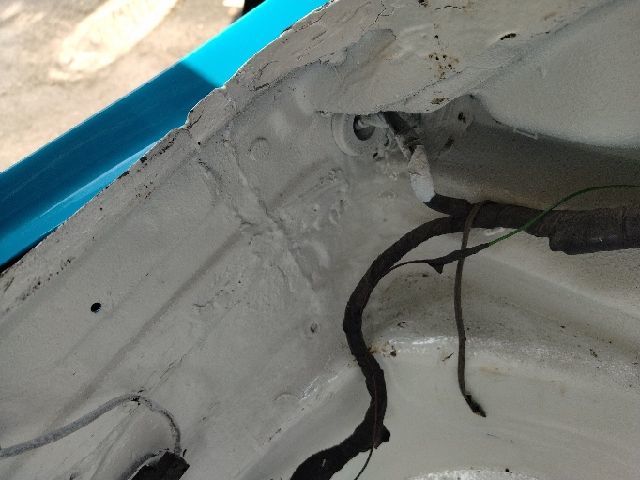 这个年份的老车我们就先不关注它的表面油漆了,我们先把前储物箱给拆下来,这一拆有点懵圈啊!虽然知道车头有事故,但这也修的太没水平了吧!这储物框整个一圈感觉都是硬钣金出来的,然后再刮腻子涂上防锈胶。