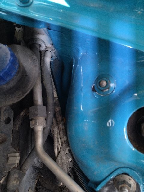 这前围也是缝缝补补又一年的赶脚,虽然涂了防锈胶还喷了漆,但是切缝还是清晰可见。单从上面的表现就可以判断前面撞的不轻。
