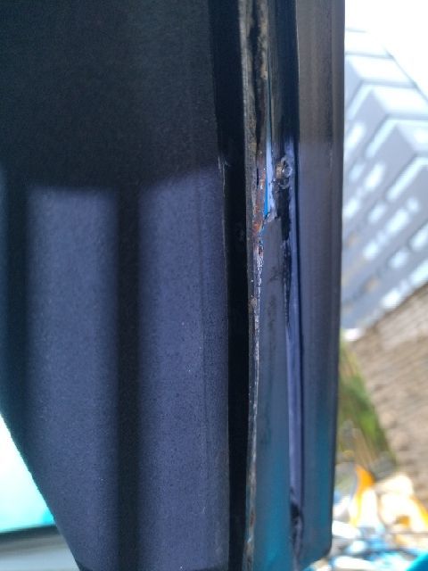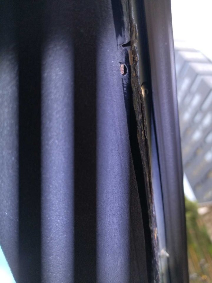 重点来了,右A柱的位置!看到烧焊的褶皱痕迹了吗?没错,是A柱内侧。