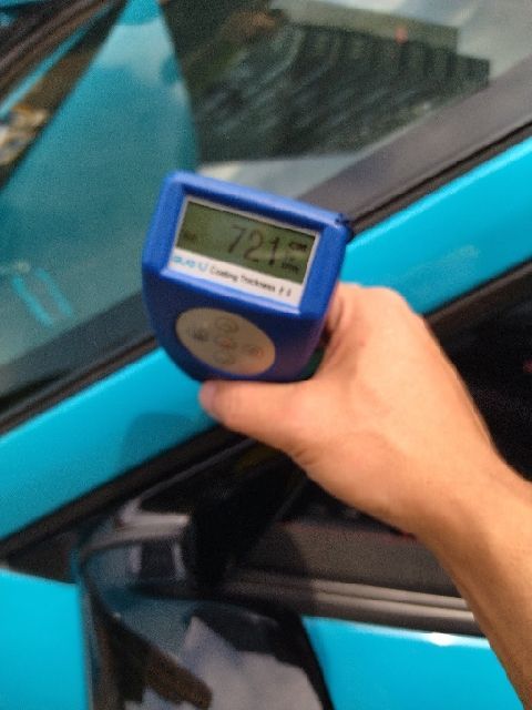 左前门也是一样,整个漆面都是差不多800μm上下的数据,应该也是多次喷漆的原因而并非是钣金修复导致的。