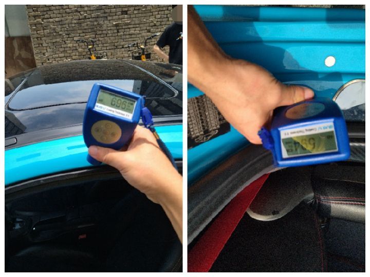 剩下的漆面也都是多次喷漆的情况,数据分布比较平均,局部有过钣金刮腻子,问题都不大。但是有一个地方除外,不仅有问题,而且还比较严重,也就是阿伟特意强调的那个严重的问题。