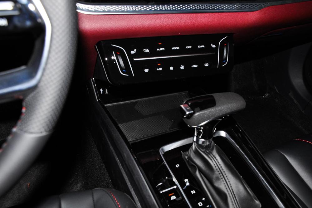 虽然奔腾B70的起步售价只要9.99万元,但进入到车内丝毫感受任何的廉价。悬浮式的中控台有着双联屏的加入,屏幕带有“双屏互动”,空调的调节方式采用触屏,再有平底多功能方向盘和造型精致的电子排挡的加入,视觉上的科技感格外惹眼。内饰的用料符合产品的市场定价,但是在易接触到的部位,奔腾B70采用了大量的柔软性材质包裹,边缘有着整齐的缝线做工,内饰装潢显得格外精致。