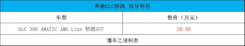 日前,我们从奔驰官方获悉,旗下奔驰GLC轿跑新增车型正式上市,新车共推出1款车型,售价为59.88万元。新车在外观方面增加了AMG-Line套件,更显个性与动感。动力方面,新车将使用2.0T涡轮增压四缸发动机,最大功率258马力,最大扭矩370牛·米,并满足国六排放标准。传动系统方面,新车将匹配9速手自一体变速箱并配备四驱系统,0-100km/h加速时间为6.7秒。