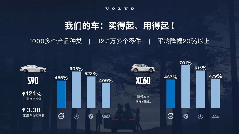 这一点最好的例子,就是在最新发布的中保研《汽车零整比体系数据》中,沃尔沃旗下产品零整比大幅下降,其中 S90车型的零整比系数相比去年更是下降了124个百分点,而XC60车型的零整比系数也达到了同级别最低,这些优化与改变也为用户带来更轻松、更无忧的用车成本保障。