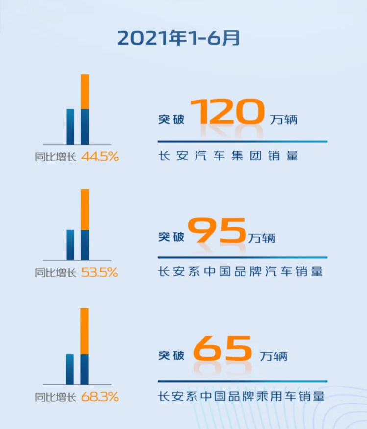 而且长安汽车的强势表现不仅限于长安品牌,旗下的长安系中国品牌和合资品牌同样保持强劲增量,上半年总体销量突破120万辆。