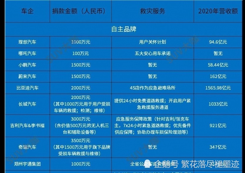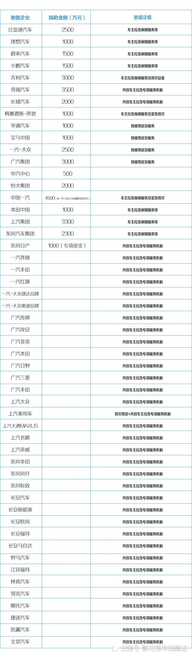 国内各家车企捐款情况!