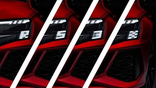 这个数字LED日行灯在不同场景下,还会显示不同的字样或者图案,其中在迎宾模式下,驾驶员一侧的日行灯部分则会出现“RS3”字样,在行车过程中会出现赛车旗的图案等等。细节似乎是做得挺到位的,但不懂欣赏的人只会觉得花里胡哨。