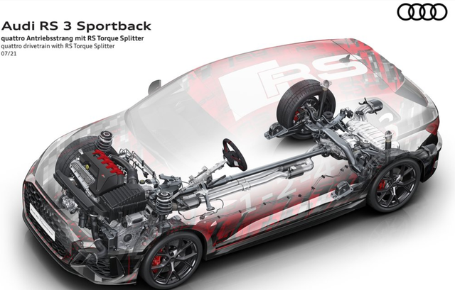 动力系统部分,RS 3将继续搭载2.5T五缸涡轮增压发动机,经过调校后可输出400马力/500牛·米,匹配七速双离合变速器,还有附带漂移模式的四驱系统,0-100km/h加速时间为3.8秒内。另外,还配备了奥迪RS Torque Splitter扭矩分配系统,其可以将全部的扭矩分配给单一的后轮上。