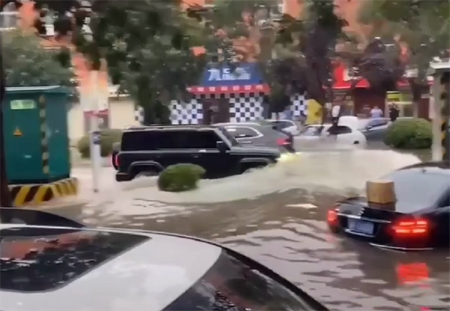 最近,在新乡某街道被淹,水位高过轮胎,但却有一台“国产车”在水中驰骋救援。