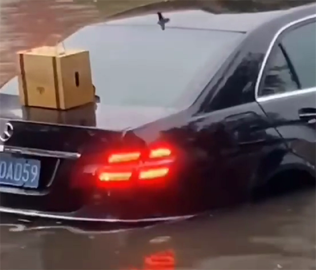 这样一台坦克300出现在街头,附近车辆都被水淹了,唯独这台车还在救援。