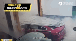 评测看完了,其实没多大问题,这种速度的对撞不好看其实挺正常的。但视频的最后放出了一段监控视频,画面里经过碰撞测试的比亚迪汉EV突然起火燃烧,工作人员使用灭火器似乎没起多大作用,最后车辆被烧毁。