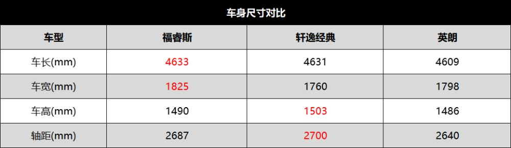在车身尺寸方面,新一代福睿斯的车身长度以及轴距为4633mm、2687mm,相比之下,别克英朗的车长以及轴距为4609mm、2640mm,轩逸经典优势在车身高度以及轴距,综合来看,新一代福睿斯尺寸更为均衡,能够最大化的平衡内部空间,对于国人大家庭而言非常具有吸引力。