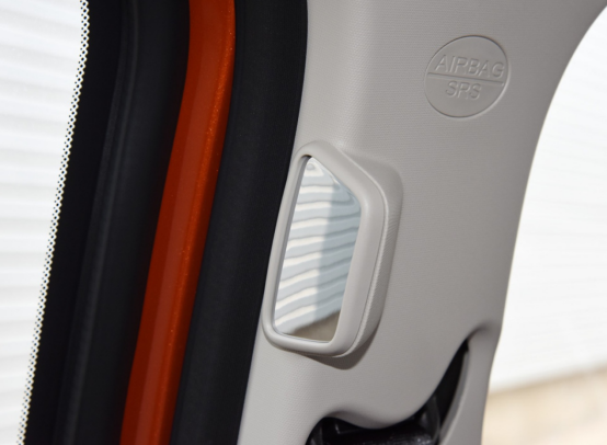 欧拉黑猫的后排B柱内部带有给乘客用的后视镜,在下车时可以观察后方情况,这个小细节非常赞。