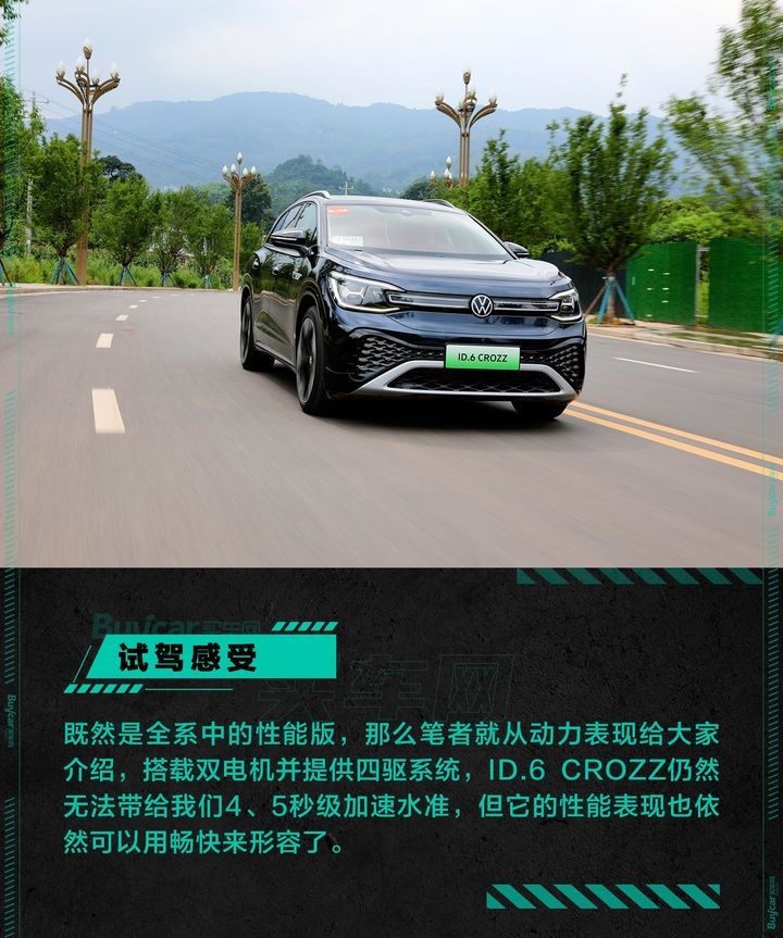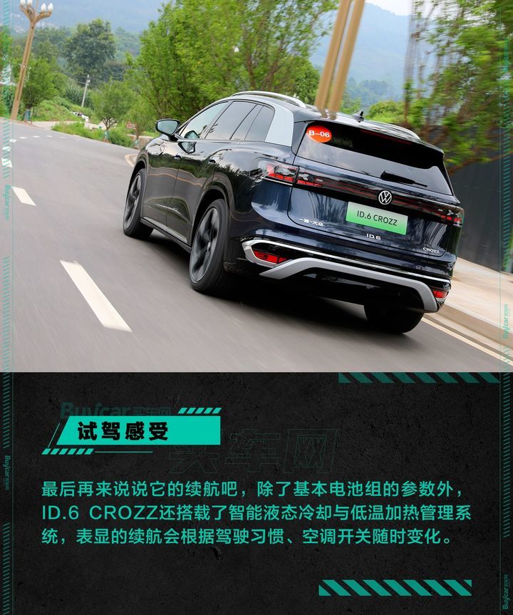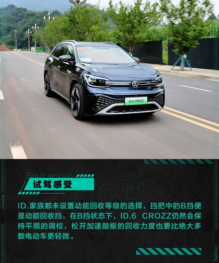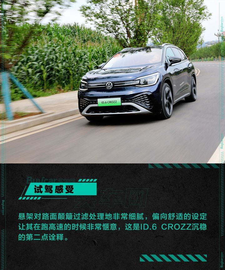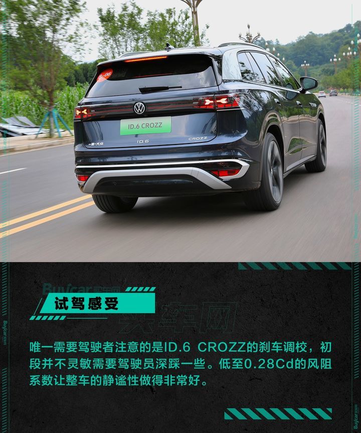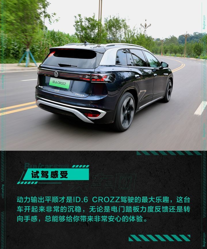 用同车老师的一句形容:开上ID.6 CROZZ,甚至找到了自吸大排量V6发动机的感受。是啊,在这个V6稀缺的时代,ID.6 CROZZ的动力平顺性仿佛让大家找回了曾经的乐趣。