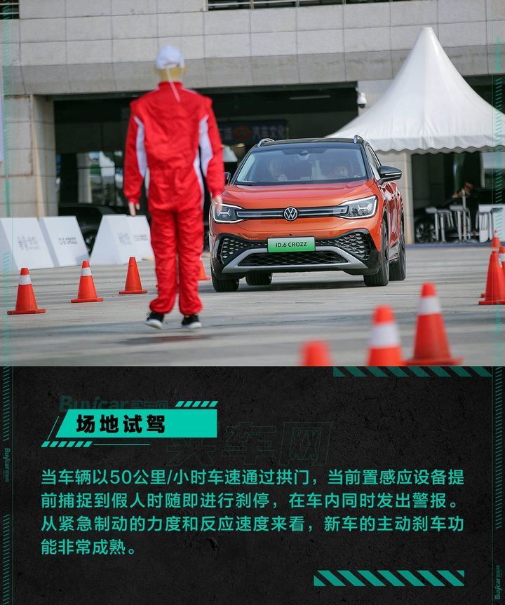 接下来体验的科目是预碰撞安全,主要是考验ID.6 CROZZ搭载的防碰撞预警和主动刹车功能是否“智能”。