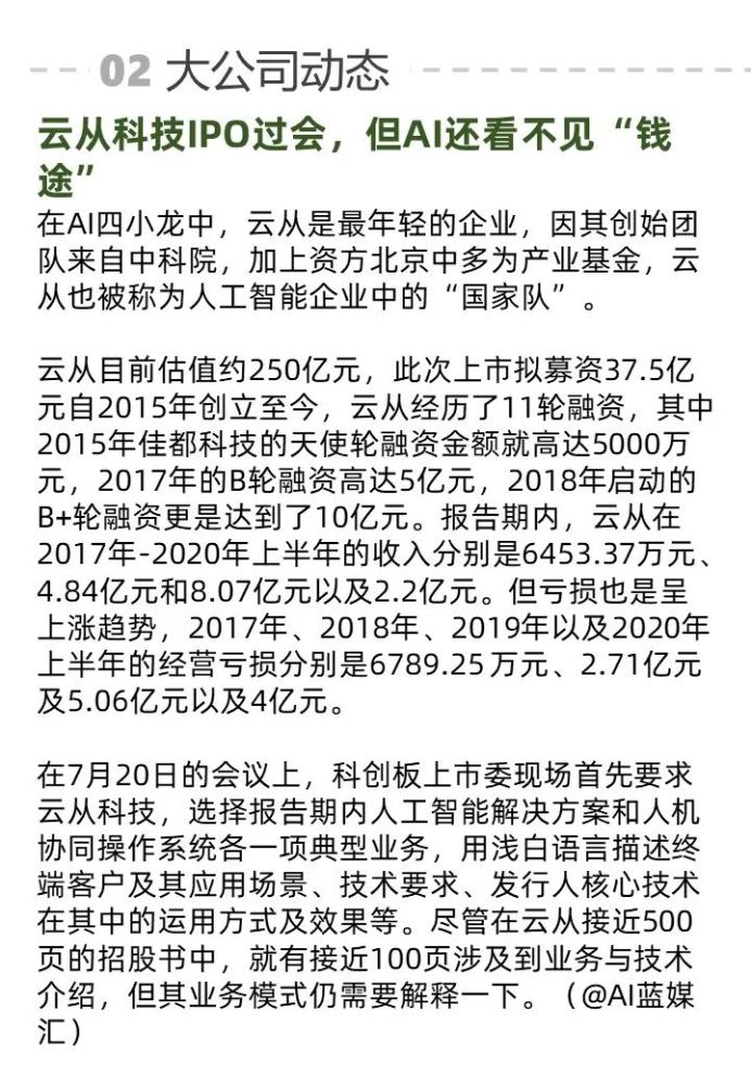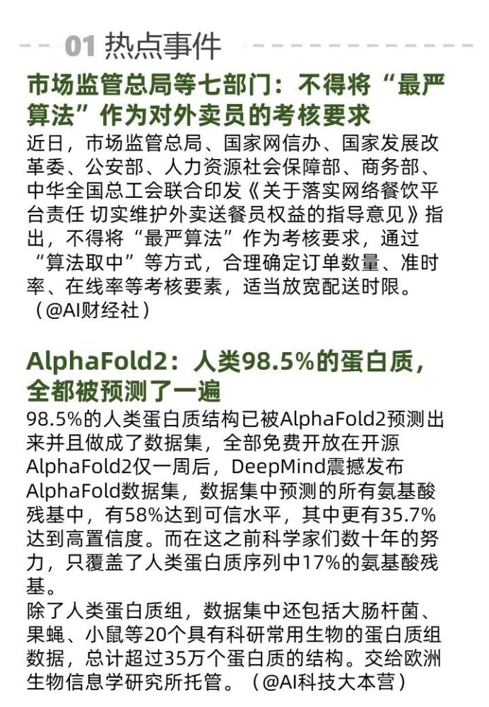 以下是 7 月 21 日至 7 月 27 日人工智能行业周报: