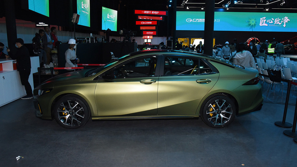 广汽传祺影豹前脸同样是类似奥迪的六边形大嘴设计,整个前脸更为下压看起来比名爵还要凶。一些分色的扰流设计让整个前脸看着更运动。大灯是一个不规则的细长型一体式大灯,引擎盖的处理上会让人觉得有一些韩系车的味道。侧面的溜背造型会更彻底一些,车窗周围的装饰条同样选择了偏向运动的黑色,贯穿式腰线将车身切割的还是有些力量感的。车尾双边双出的排气设计看起来异常凶悍,但结合车型定位和动力还是过于浮夸了。