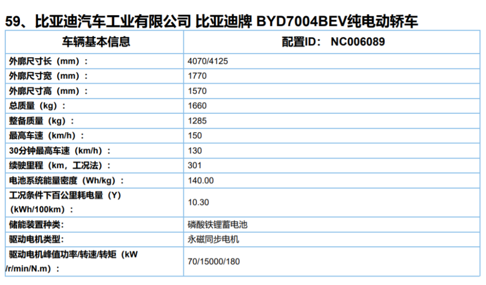 从最新公开资料显示,新车长4070/4125mm、宽1770mm、高1570mm,其将搭载永磁同步电机,最大功率70kW,峰值扭矩180N·m。电池方面,新车将搭载30.72/44.928kWh的电池,车辆的NEDC续航里程分别为301km和405km。
