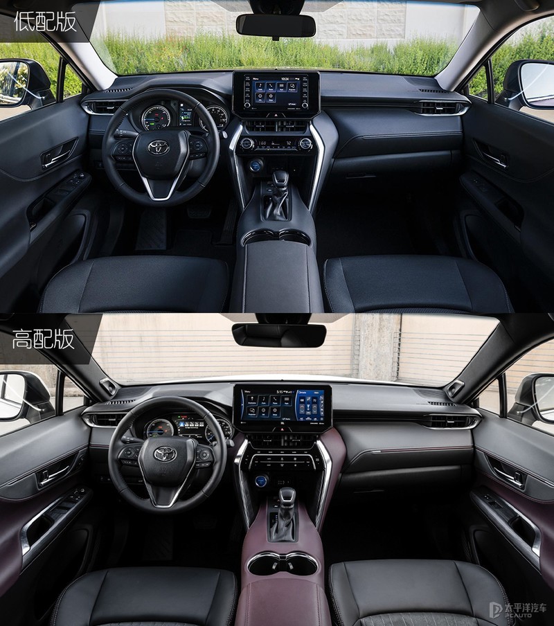 内饰方面,我们以左舵版作为参考,与粗糙狂野的RAV4的不同,Harrier更加偏重细节,以马鞍座为灵感的中控瞬间占据视觉焦点,在乘客看到和接触到的地方,多采用大面积柔软皮质作为包覆,低配车型的中控拥有更多实体按键和旋钮,中控屏也明显更小,所幸RAV4身上的”背投大电视“并未出现。而高配版则采用取消了旋钮,采用简洁的触控面板作为操作方式,屏幕也升级为12.3英寸的宽比例样式,内嵌最新的T-Connect SD多媒体系统,支持CarPlay以及Android Auto,并且可以利用语音进行操作。另外,车主还可以在手机上使用“MyTOYOTA”来远程操作车辆启动、查看车辆位置、查看车辆信息等功能,至于国产版会否保留这个功能就暂时未知了。