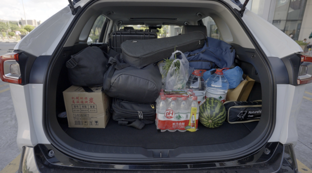 在使用层面,威兰达高性能版更有突出之处。虽然有更强大的电机与更彪悍的E-FOUR电子四驱系统加持,储物空间、乘坐空间等层面,都十分令人满意。本次自驾游中,我们一共四个人,除了基本的行李以外,还有烧烤炉、烧烤炭、食材、饮料等众多食材,而威兰达高性能版也能轻松容纳。