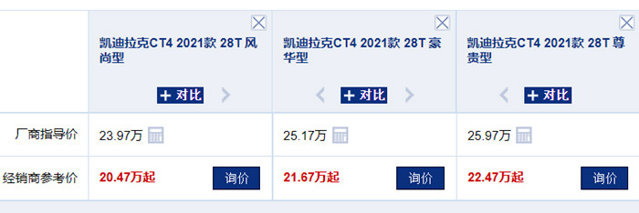 论性价比和实力,凯迪拉克CT4也是可圈可点,品牌定位是豪华品牌,售价区间在23.97万-25.97万元。要知道,天籁和凯美瑞高配车型的价格都在26.98万元,迈腾高配车型的价格在30.99万元。可以说主流合资品牌中级轿车的封顶价格都超过了凯迪拉克CT4的封顶价格,所以说该车的性价比还是不错的。