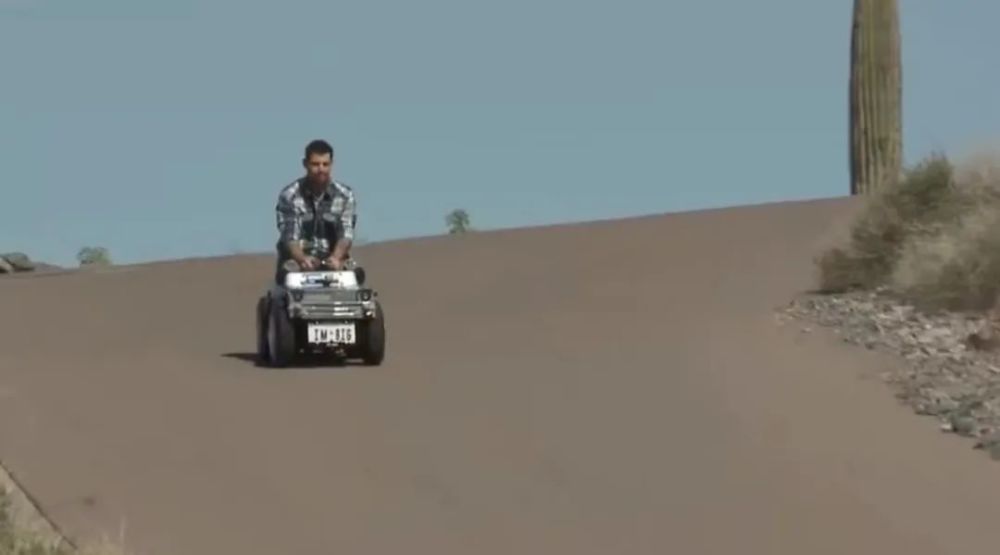 美国人奥斯丁·库尔森打造了一台像玩具车一样的吉普车,是世界上最小的可合法上路的非量产车型。它只有126.47厘米长,63.5厘米高和65.41宽,开着上路真是有着莫名的喜感...