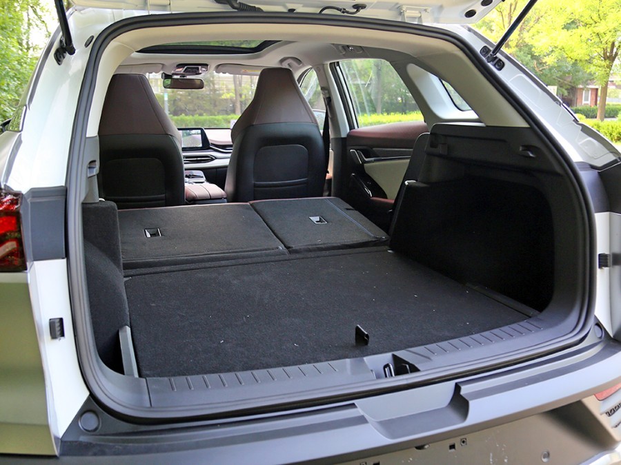 后备厢的内部空间很规整,并且地板支持高低调节,在常规模式下,可以获得更大的纵向空间,而在后排座椅靠背放倒后,可以尽可能的形成一个平面,让后备厢拥有更好的平整度。