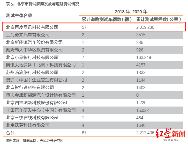 从无人驾驶的牌照和里程数量来看,根据《北京市自动驾驶车辆道路测试报告》数据及百度财报显示,截至2020年12月百度已获得199张自动驾驶测试牌照,获得了最高级T4牌照,还获得了全国首个无人化(第一阶段)测试许可和加州全无人驾驶测试许可,成为行业中唯一同时获得中美此类许可的中国公司,自动驾驶测试牌照覆盖城市、总数量位居全国第一。