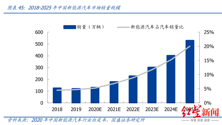 为何百度要亲自下场造车,想必百度自然也看到了未来智能汽车强大的市场潜力,根据《2020年中国新能源汽车行业白皮书》数据显示,预计2025年,中国新能源汽车占汽车销量比将超过20%。