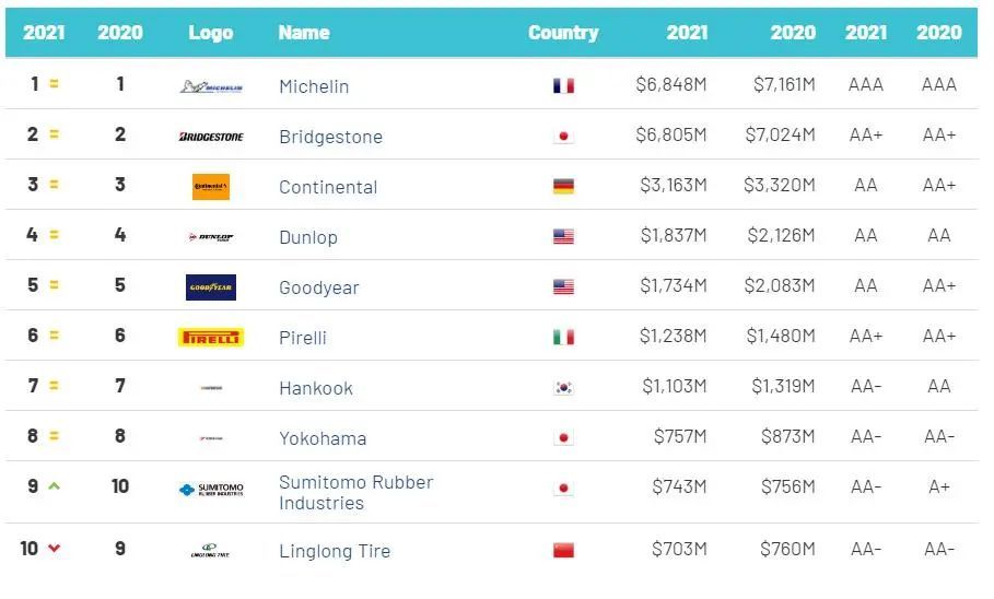 就在不久之前,小编在行业类媒体——轮胎世界网上的一篇报道文章《2021最具价值十大轮胎品牌排名》中得知,英国品牌评估机构Brand Finance发布了“2021全球最有价值的十大轮胎品牌”排行榜。