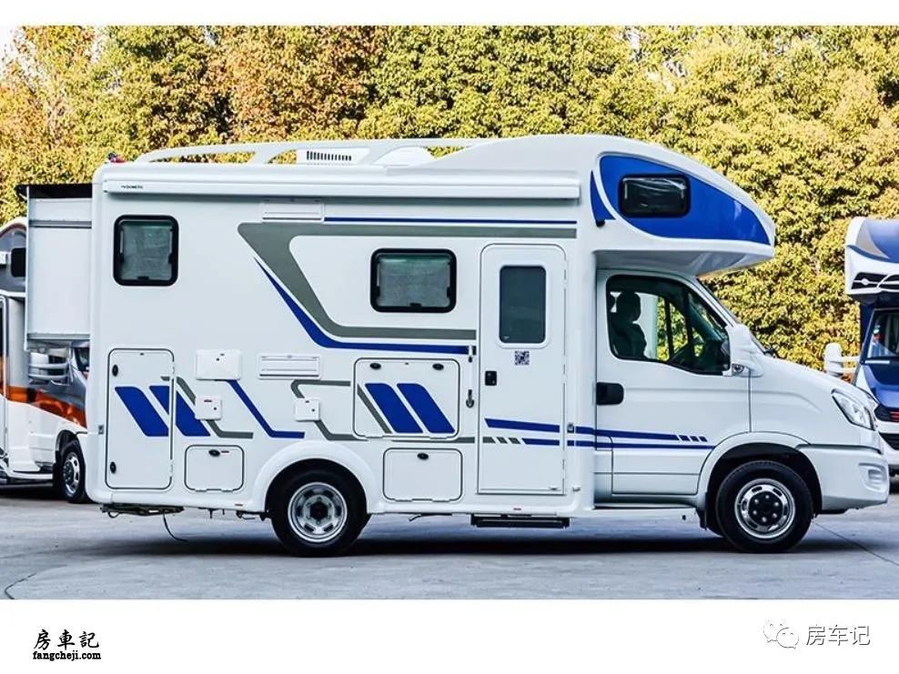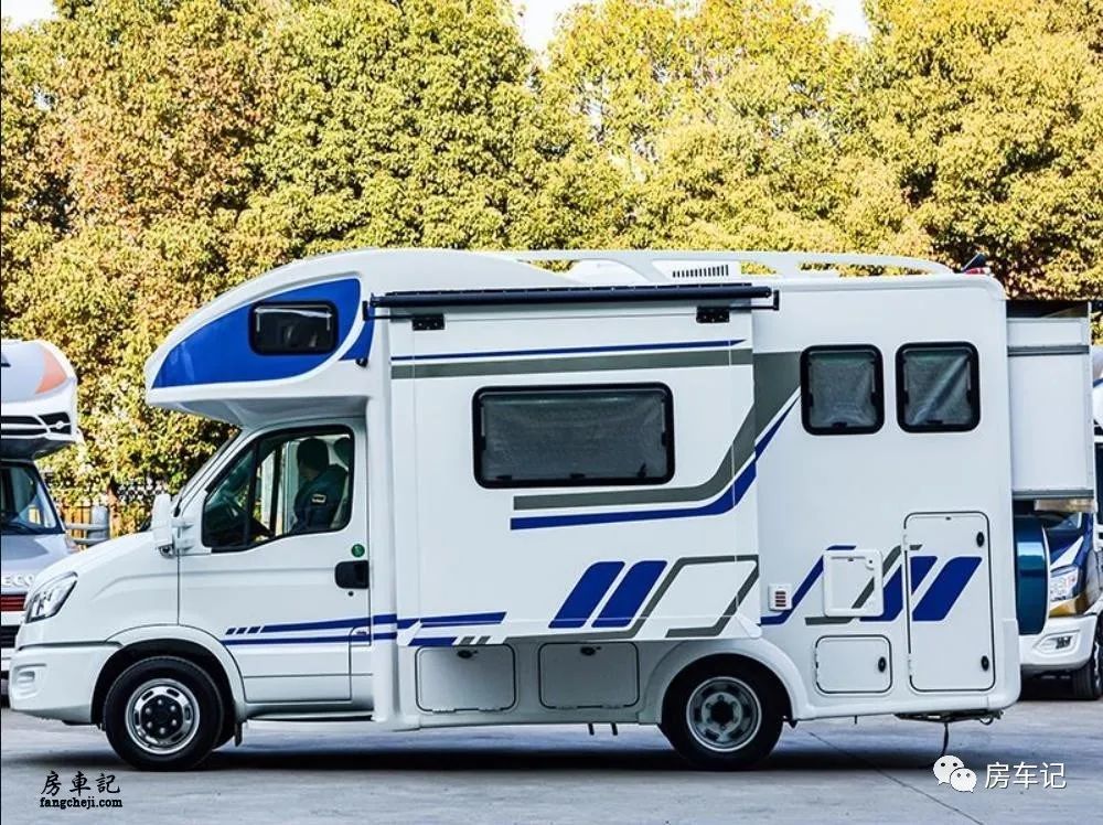 车身左侧配置比较齐全,尾部是一个贯穿式的储物仓,因为是贯穿式的设计所以储物空间是非常足够的。在前方一些的位置是一个户外灶台,也就是一个抽拉式的柴油炉,主要是能够满足户外露营时烹饪的需求。比较有意思的是,中门旁边还有一个翻折式的一个小桌板的设计,这个和抽拉式的灶台设计在一起可以说是天生一对,使用起来非常方便,平时我们看到别的房车可能带有户外灶台,但是灶台的面积比较小,很多时候要车内车外来回跑,简约欧霸解决了这个问题。