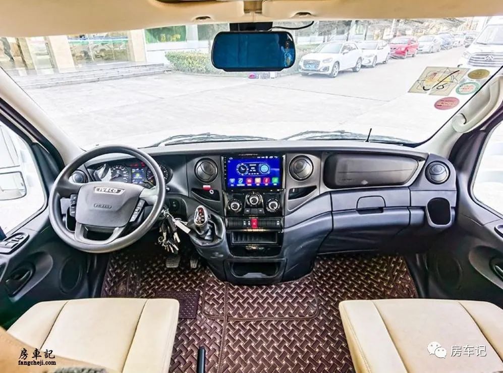 驾驶舱和原底盘车相比区别不是很大,同样的多功能方向盘,中间是一款液晶显示屏可以显示导航和倒车影像地功能。