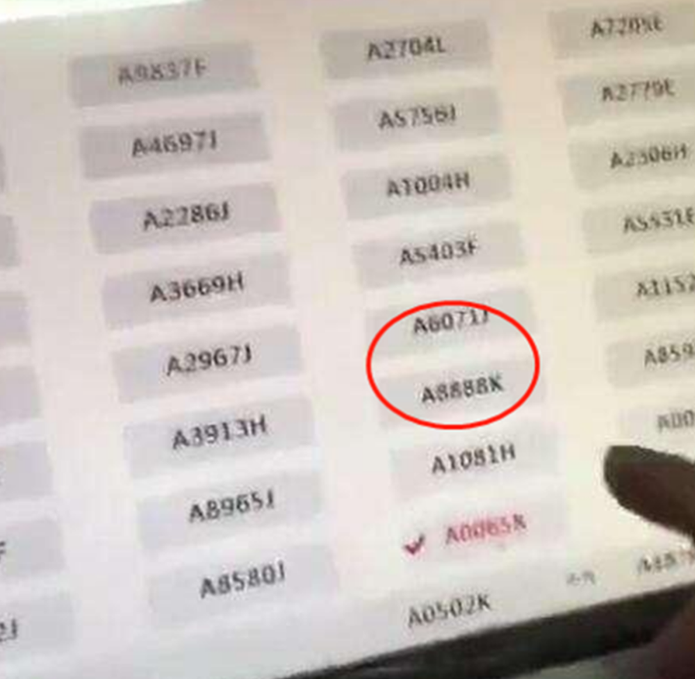小伙子开始按照操作流程来摇号,但是让他没有想到的是,机器给出的摇号页面中,出现了一个非常吉利的车牌——A8888K,这是一个“8”的连号车牌,也就是我们常说的豹子号车牌。车管所里的其他人看见之后,纷纷跑过来围观,大家都是十分羡慕的,因为这样的车牌并不常见。