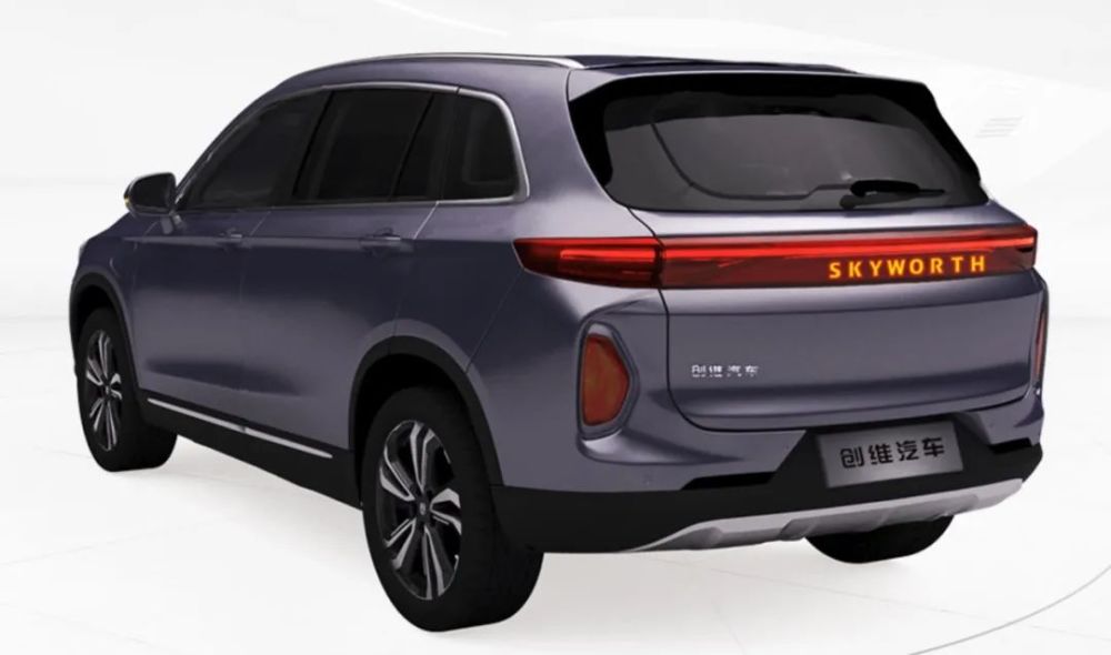 车尾造型较为简约,贯穿式的尾灯颇为细长,迎合时下主流趋势。由英文“SKYWORTH”字样组成的品牌标识被布置在尾部中央,可支持点亮,增加高级感的同时也个性十足。综合看来,尾部算是比较饱满的,且不失折线立体度。