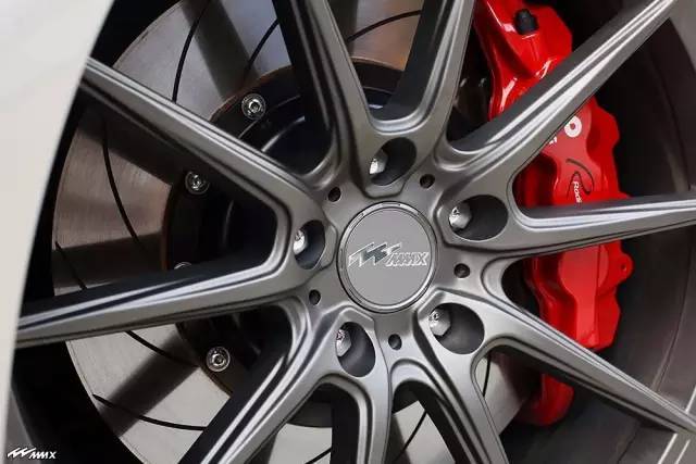 刹车系统的强化是伴随着动力提升后的必然过程,也是确保人车安全的重要部分,因此往往成为热门的改装项目,大六活塞玫瑰红的刹车卡钳,改装多活塞卡钳带来更强的刚性、更强的夹力、力量平均与反应迅速等优点,是刹车升级的更好选择。