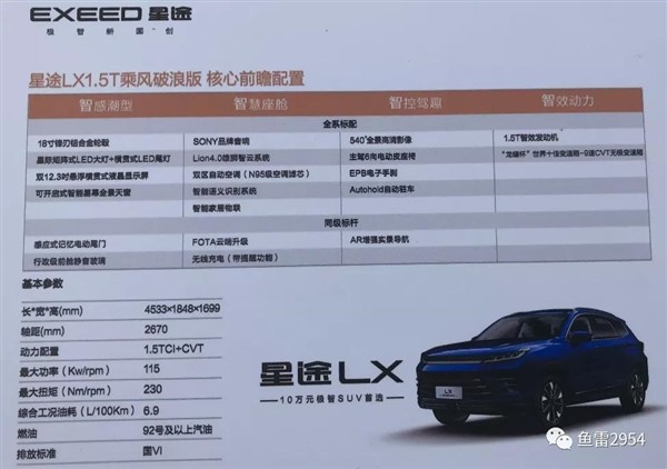 价格部分,当前现款在售的星途LX车型,厂商指导价10.99-15.09万元,预计“揽月追风”和其价格相差不大。