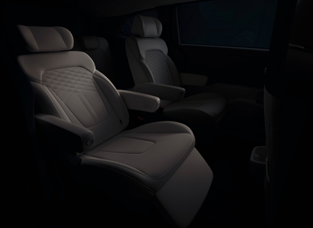 后排座椅布局合理,整体属于2+2+3布局,所以第2排两个独立座椅会更舒适一些,不仅可以前后滑动,还能够调节座椅靠背角度,更加值得惊喜的是第2排座椅带有原厂腿托,靠背调节之后基本上就能够形成半躺的模式,这在长途出行过程当中会非常舒适。