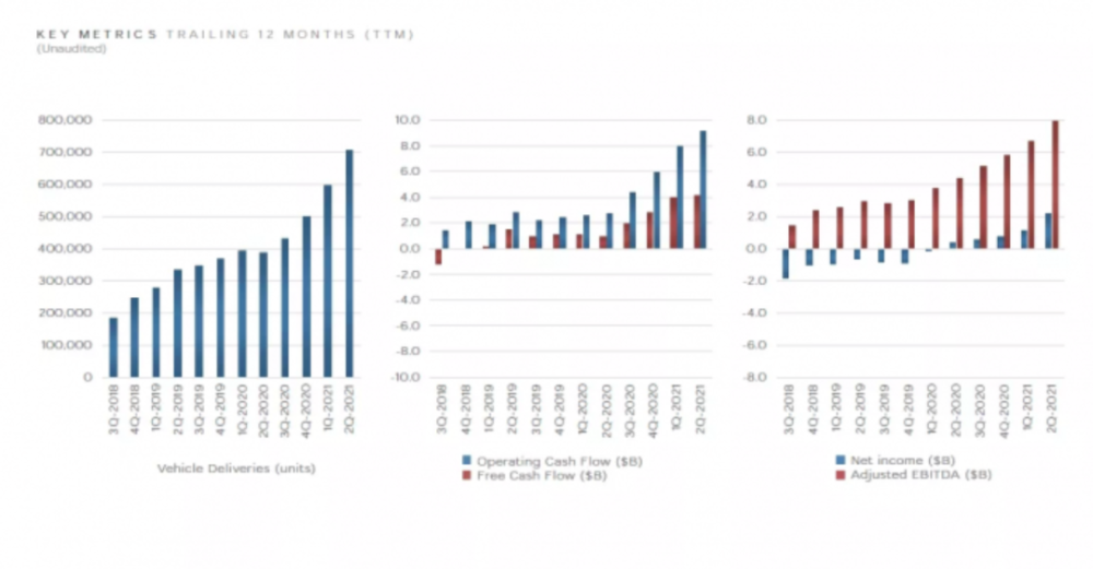 从产量来看,特斯拉的产能也进一步释放。第二季度汽车总产量为206421辆,比去年同期的82272辆增长151%。Model 3和Model Y车型的产量为204081辆,比去年同期的75946辆增长169%。