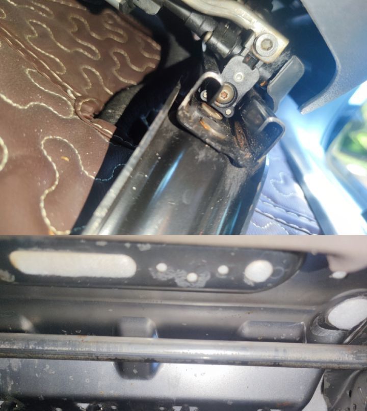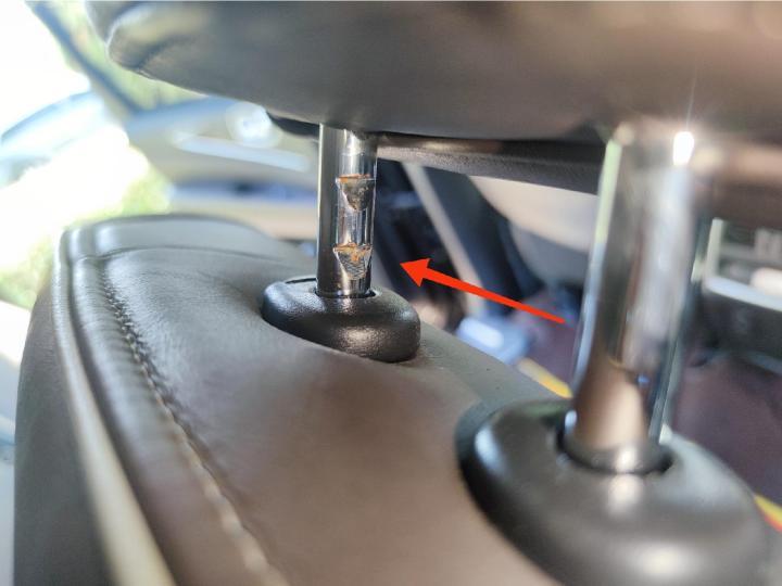 后排头枕拔出来后,内部的卡槽内也有生锈和水痕,从目前的情况来看,这台车修的是真可以。