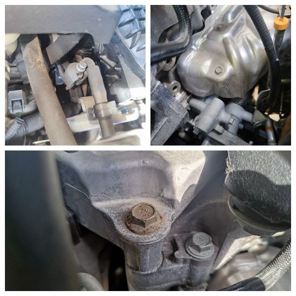 进气排气歧管螺丝都是原封未动,固定发动机的机脚螺丝也没有动过,内部的橡胶垫也没有老化开裂的情况。从上面来看,发动机的状态也不错,至少没有下地的可能,但并不是一切正常。