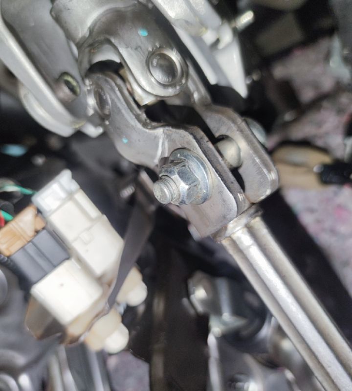 下部方向机管柱因为不是铁的,所以表面看不出有用的信息,但是方向机管柱螺丝有拆装,拆方向机管柱要么是维修故障,要么是为了拆仪表台,作为一台才三年的车,我觉得后者的可能性更大,而且维保记录上也没有召回维修的情况。
