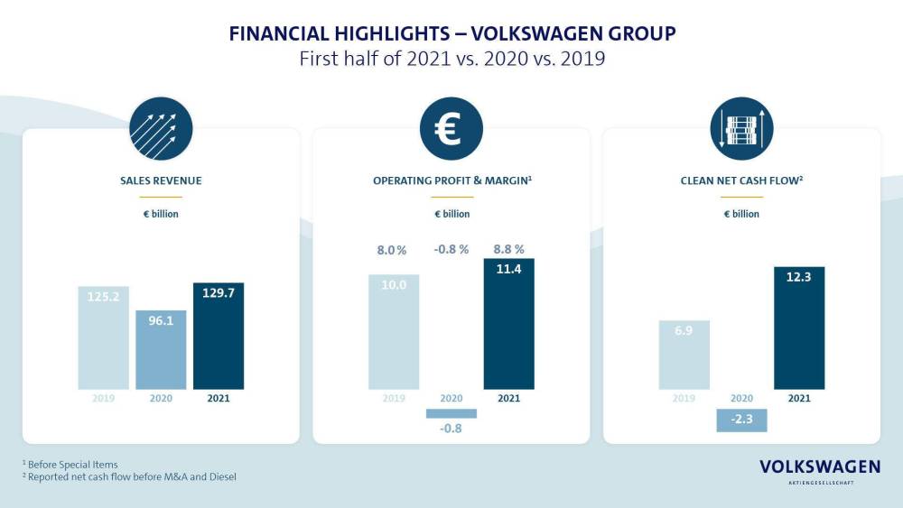 大众汽车集团首席执行官赫伯特·迪斯(Herbert Diess)表示:“我们在运营和战略上都保持着高速发展。上半年的创纪录成绩清楚地证明了我们的品牌有多强大,产品多有吸引力。高端细分市场表现尤其出色,实现了两位数的回报,金融服务也是如此。我们的电力攻势正在加速,我们将在未来几个月继续加快步伐。我们还根据我们的新集团战略 NEW AUTO 重新调整公司,以便我们可以利用未来的利润池。通过这样做,我们正在准备大众汽车在新的移动世界中发挥主导作用。”